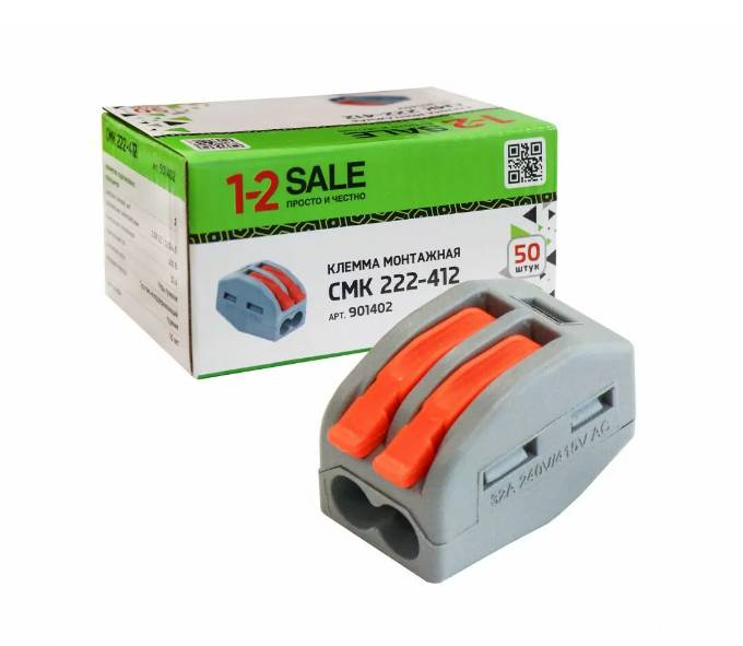 Клемма СМК 222-412 с рычагом 2х(0,08-2,5(4)мм2), 32А 1-2.sale  Новинка