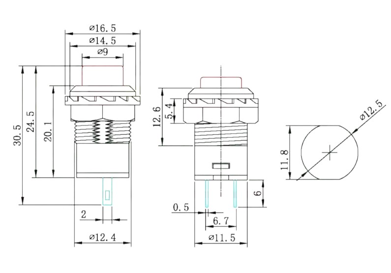 Кнопка с фиксацией на корпус DS-228, 250В/1.5А, 12.5мм