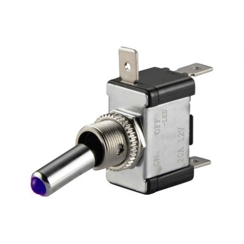 Тумблер 12V 20А (3c) ON-OFF однополюсный с красной LED подсветкой (ASW-07D) предназначен для коммутации электрических цепей напряжением 12В. Такая разновидность переключателей применяется на лицевых панелях в качестве комплектующих изделий различного электрооборудования (в измерительных приборах, блоках питания, электроустановках на различных производствах, легковых и грузовых автомобилях, поездах и многих других местах).