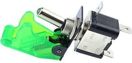 Тумблер 12V 20А (3c) ON-OFF однополюсный с зелёной LED подсветкой и зелёной прозрачной крышкой