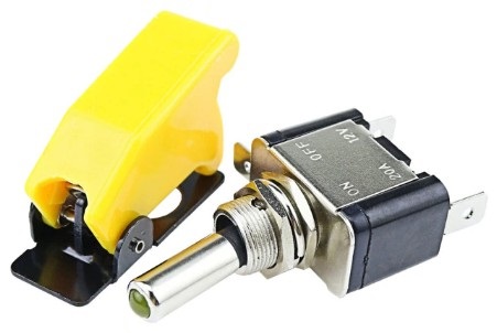 Тумблер 12V 20А (3c) ON-OFF однополюсный с жёлтой LED подсветкой предназначен для коммутации электрических цепей напряжением 12В. Такая разновидность переключателей применяется на лицевых панелях в качестве комплектующих изделий различного электрооборудования (в измерительных приборах, блоках питания, электроустановках на различных производствах, легковых и грузовых автомобилях, поездах и многих других местах).