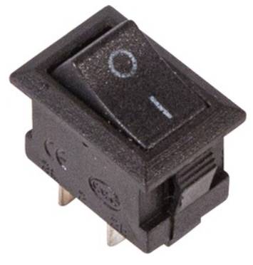 Выключатель клавишный 250V 3А (2с) ON-OFF черный Micro предназначен для коммутации электрических цепей переменного тока напряжением до 250В. Клавишные (Рокерные) выключатели применяются в качестве комплектующих изделий различного электрооборудования (в сетевых фильтрах и удлинителях, аудио-оборудовании, блоках питания, электроустановках на различных производствах и многих других местах). Такой клавишный переключатель имеет два положения. Принцип действия основан на перемещении клавиши в одну из позиций. Для переключения в нужное положение требуется приложить некоторые усилия на клавишу. Монтаж осуществляется без применения винтов на плоских панелях толщиной от 0.8мм до 3мм. Подключение контактов осуществляется плоской клеммой, либо с помощью пайки.
