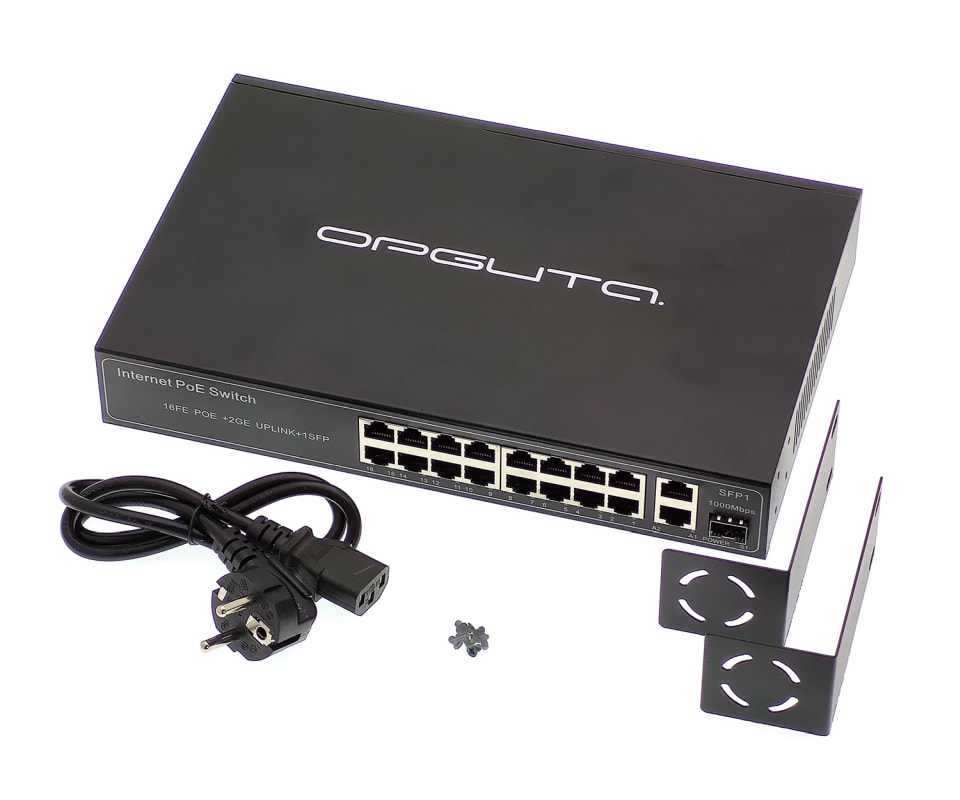 Неуправляемый POE-коммутатор Орбита OT-VNP37, 16x PoE-портов 100Mbps, 2x Uplink-порта 1Gbps, 1x SFP