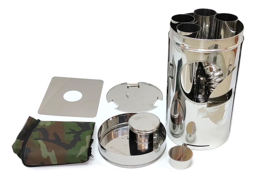 • Печка устанавливается на складные ножки для избежания нагрева пола палатки.