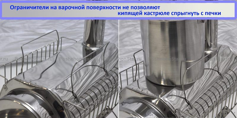 • Печка и коптильня. Мини-пошехонку  можно использовать как камеру горячего копчения. Можно насладиться деликатесами в походе без дополнительного оборудования.