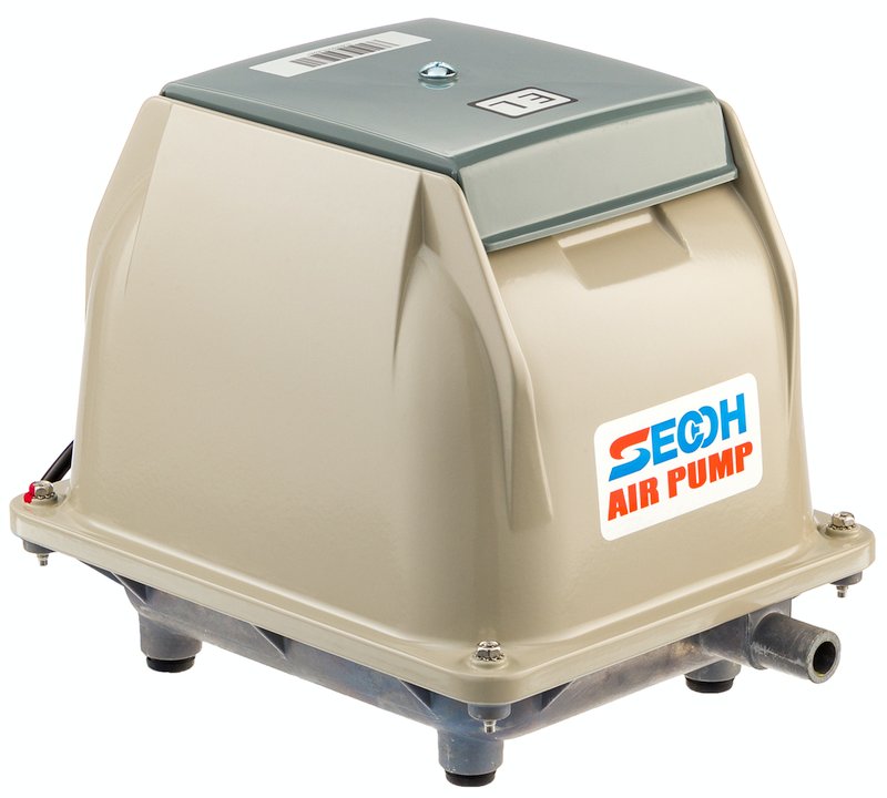 Компрессор SECOH EL-60 известного японского бренда предназначен для непрерывной продолжительной аэрации канализационного септика (автономной очистной станции) или небольшого пруда.