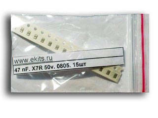 SMD (ЧИП) конденсаторы, диэлектрик X7R, рабочее напряжение до 50В, Набор состоит из 25 номиналов от 270 pF до 0,047mF. Каждый номинал находится в отдельном промаркированном пакетике с застежкой. Диэлектрик X7R имеет низкую температурную зависимость.