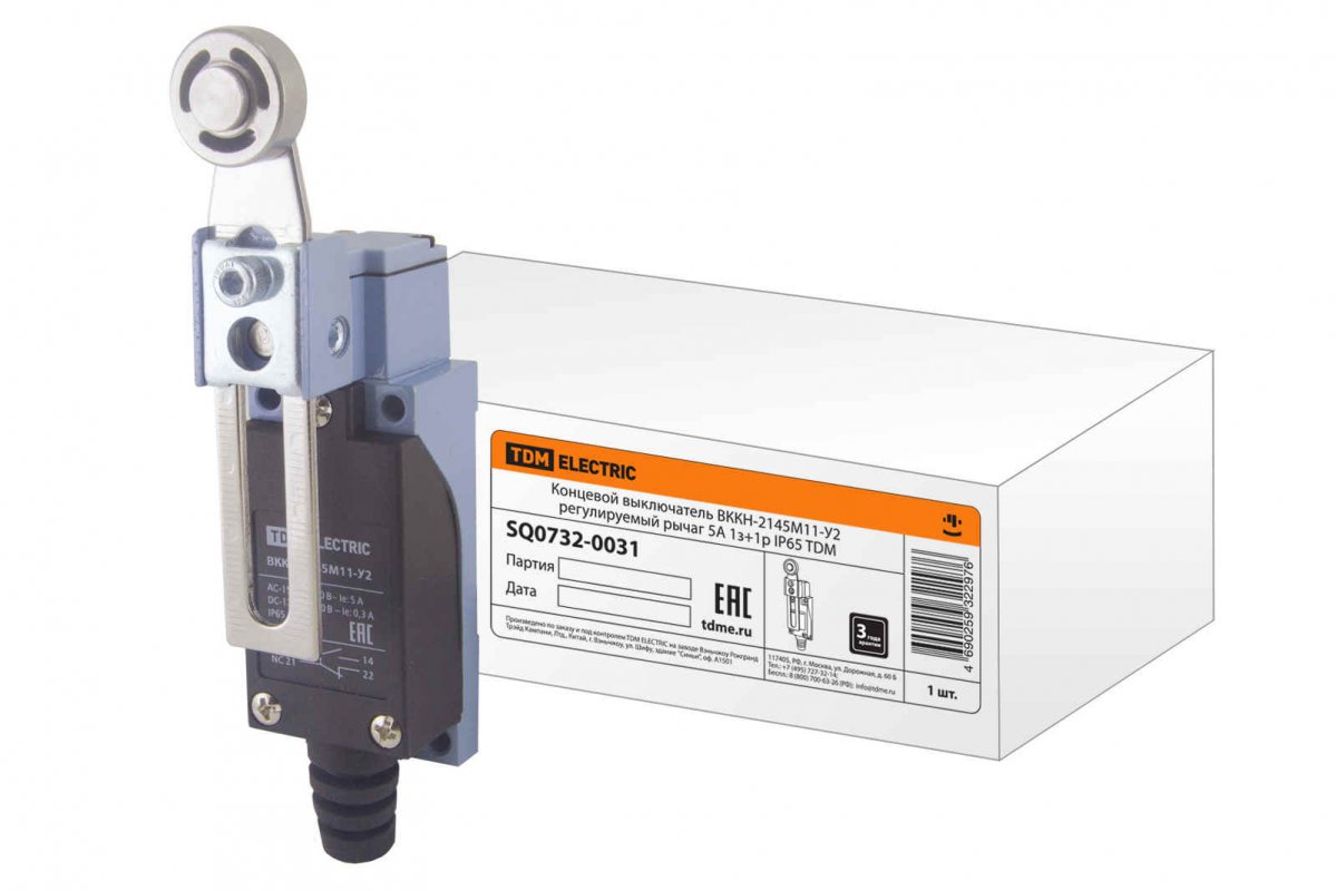 Выключатель концевой ВККН-2145М11-У2 регулируемый рычаг 5А 1З+1Р IP65 TDM