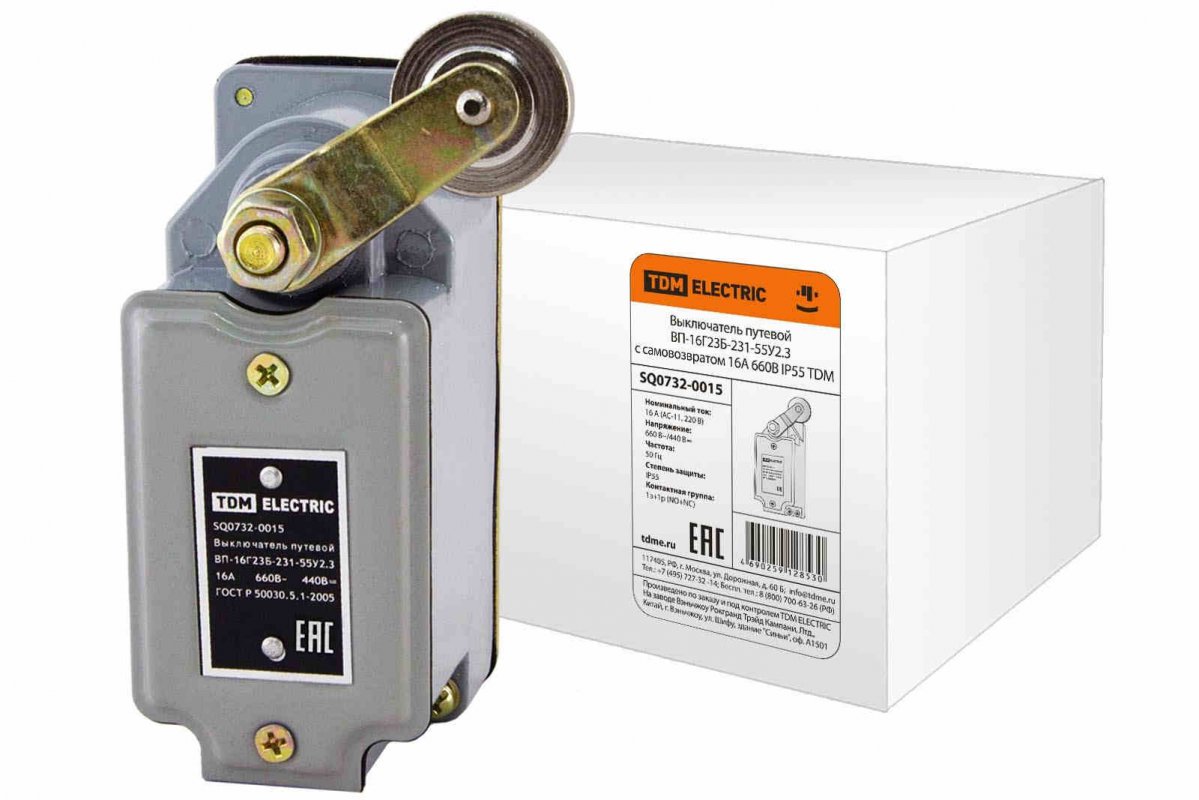Выключатель путевой ВП-16Г23Б-231-55У2.3 с самовозвратом 16А 660В IP55 TDM