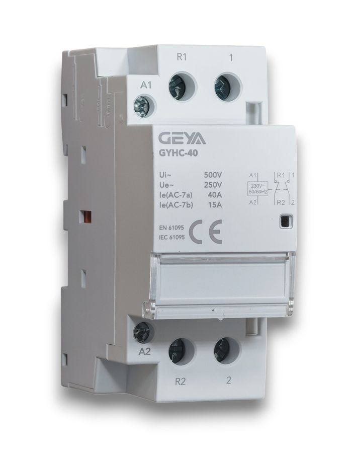 Контактор модульный GYHC-40 предназначен для гальванической развязки между силовыми цепями и цепями управления, дистанционного включения нагрузки путем подачи управляющего напряжения на обмотку реле, а также использования в качестве промежуточного.