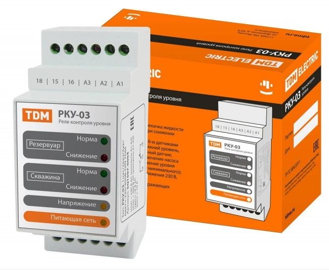 РКУ-03 реле контр уровня 1 насос/2 резерв/4 уровня/6 датчиков 230/400В DIN (без датчиков) TDM