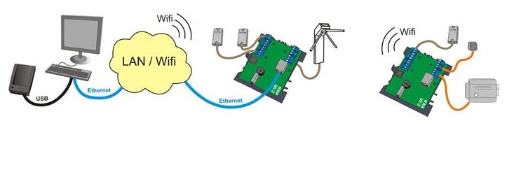 Также в отдельных конфигурациях обеспечивается подключение активатора, требующего подачи напряжения разной полярности для открывания и закрывания. Наличие отдельного входа для пожарного шлейфа повышает пожарную безопасность, так как перевод его в активное состояние обеспечивает разблокировку прохода вне зависимости от наличия связи с компьютером.