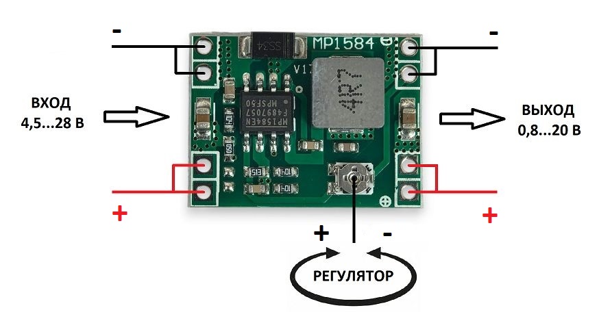 Выходное напряжение чипа MP1584EN 0,8...20 В постоянного тока