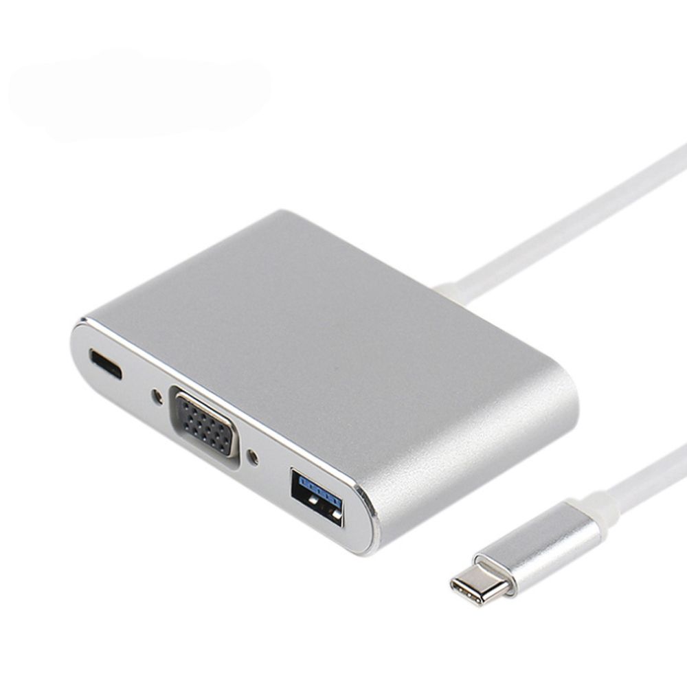 Этот адаптер позволяет увеличить количество подключений к устройству через порт USB Type-C. Просто подключите его к своему настольному компьютеру, ноутбуку, планшету или смартфону и используйте любой из доступных портов: VGA, USB Type-C для сквозной зарядки или USB-A 3.1.