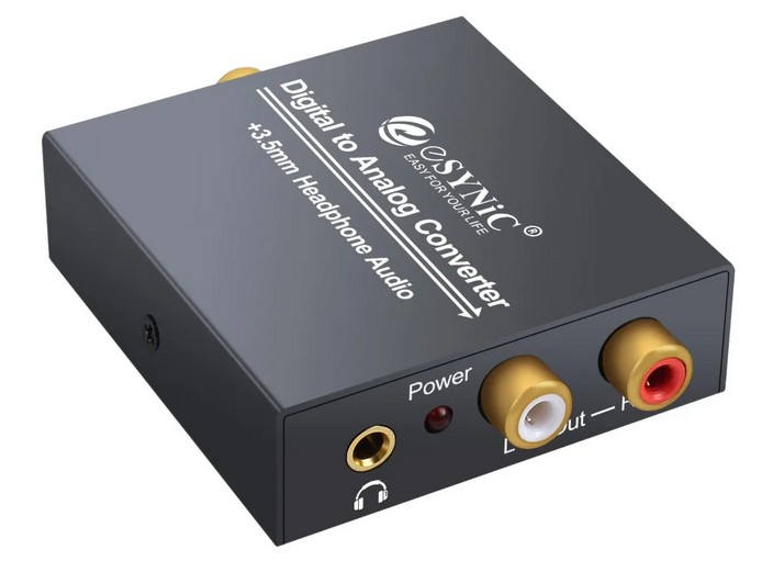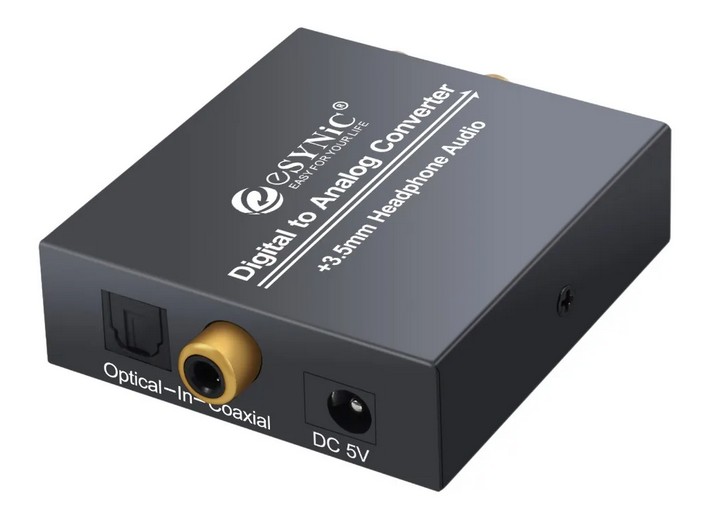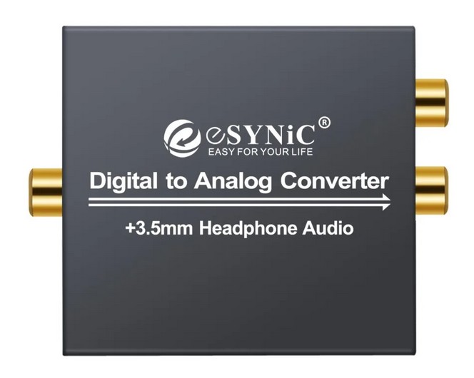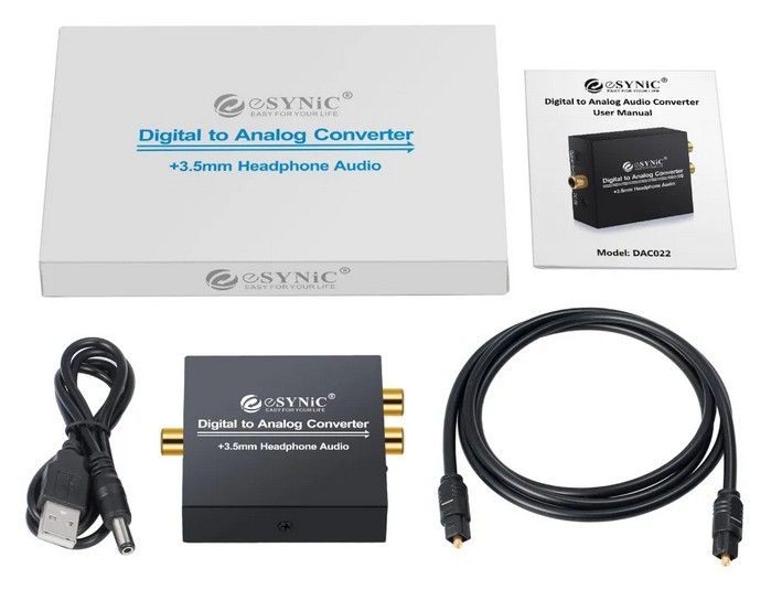 Цифровой аудио конвертер (Coaxial, S/PDIF) Esynic DAC022s позволяет конвертировать аудио сигнал из Coaxial, S/PDIF в Coaxial (2 RCA) +  AUX. Устройство позволяет извлекать звуковой сигнал из сигнала Coaxial, S/PDIF в систему усилителя мощности для получения высококачественных звуковых эффектов, которые трудно достичь в динамиках телевизора или проектора.