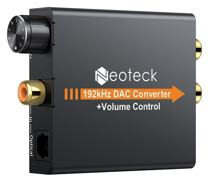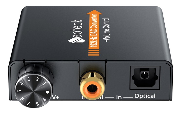 Цифровой аудио конвертер (Coaxial, S/PDIF) Neoteck NTK056c позволяет конвертировать аудио сигнал из Coaxial, S/PDIF в Coaxial (2 RCA) +  AUX. Устройство позволяет извлекать звуковой сигнал из сигнала Coaxial, S/PDIF в систему усилителя мощности для получения высококачественных звуковых эффектов, которые трудно достичь в динамиках телевизора или проектора. Модель имеет регулятор громкости.