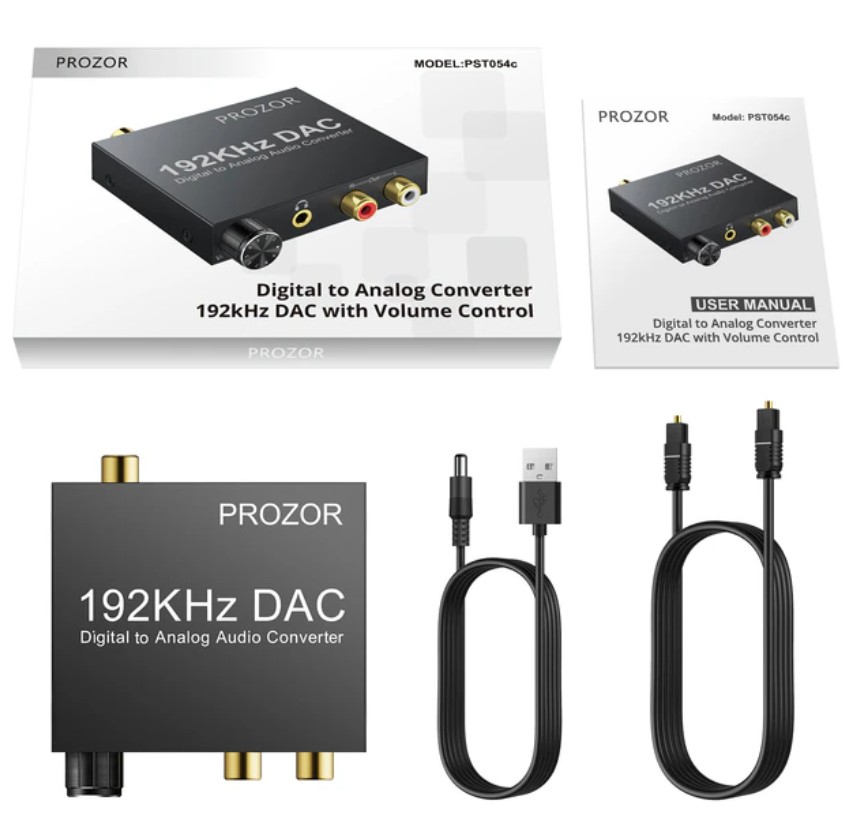 Prozor PST054c — компактный ЦАП с поддержкой аудиоформата 24/192 отлично подойдет для использования с устройствами вывода звука высокой четкости. Оснащен интерфейсами для подключения по коаксиальному RCA кабелю и оптическому S/PDIF. Для питания устройства используется кабель USB с разъемом 2.1х5.5, адаптер 220В в комплект не входит.