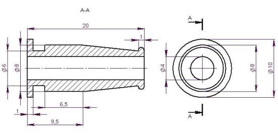 Втулка проходная для кабельных вводов. Диаметр кабеля 4 мм, диаметр отверстия в корпусе 6 мм. Материал: пластикат(резина).