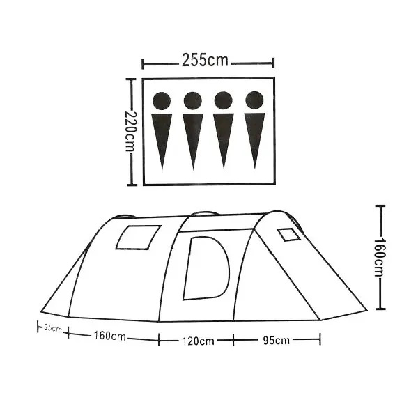 Размеры основной палатки 255  х 220 х 160 см