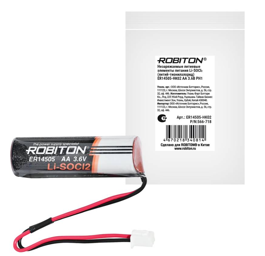 Элемент питания ROBITON ER14505-HK02 АА 3,6В с коннектором Новинка