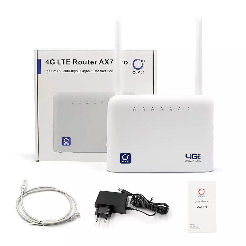 Универсальный беспроводной 3G/4G-маршрутизатор Olax AX7 Pro поддерживает связь с сотовыми сетями большинства стандартов (GSM/3G/LTE). Устройство работает со всеми операторами связи Yota, MTS, Beeline, Megafon.