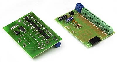 На основной плате находится микроконтроллер, управляющий работой всей схемы. На плате имеются два входа (IN1 и IN2). При подаче сигнала на один из входов происходит поочередное включение выходов (OUT1-OUT8) с эффектом "бегущей волны". В зависимости от того, на каком входе появился сигнал в ту сторону и распостроняется бегущая волна. Устройство остается включенным в течении одной минуты, затем также в виде бегущей волны выключается. В качестве исходного датчика можно применить любой датчик, имеющий на выходе уровни стандартной логики и питающийся от +5В. Например, датчик движения (sb00322a-1), или обычную кнопку без фиксации, подающую +5В на вход (см.схему соединения). Основная плата поддерживает до трех плат расширения. Таким образом, общее количество коммутируемых выходов можно увеличить до тридцати двух.