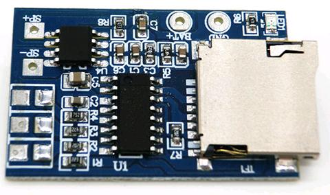 Радиоконструктр собран на микросхеме GPD2846A на печатной плате размером 34 на 22 мм, на которой установлена микросхема плеера, стабилизатор питания и слот TF карты.