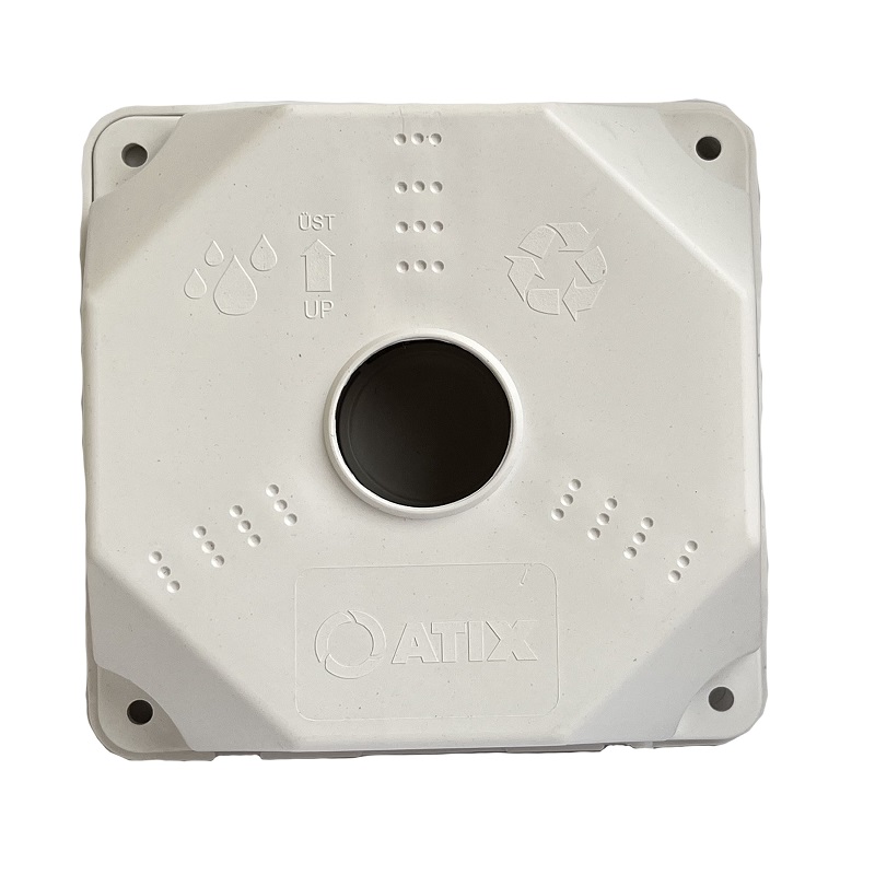 Монтажная влагозащищенная коробка Atix AT-MA-PJB01 для всех типов камер видеонаблюдения. Обеспечивает удобство монтажа видеокамер на стену или потолок.
