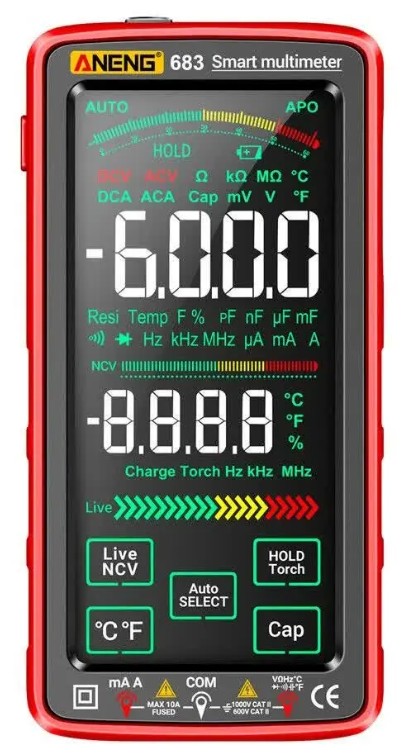 Постоянное напряжение (DC Voltage) 0 - 6 В, точность ± (0,5% + 3), разрешение 0,001 В