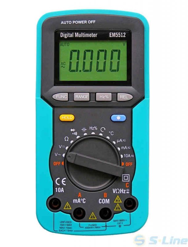 Уникальный цифровой мультиметр EM5512, автоматический выбор диапазонов, детектор последовательности фаз, измерение ёмкости, тока, напряжения, сопротивления, частоты, тест цепей и диодов.