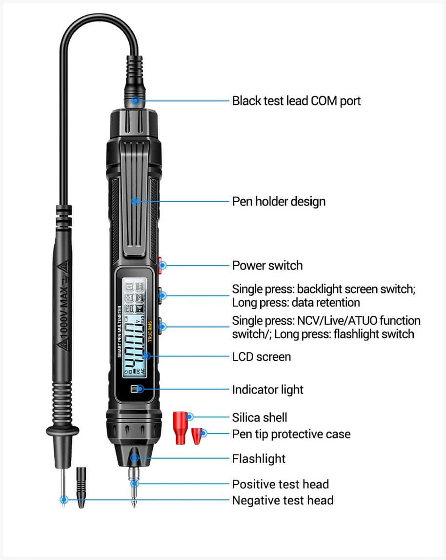 Мультиметр выполнен в виде щупа/ручки удобен в работе, не надо переводить взгляд на экран с объекта измерения, сильно ускоряет работу по поиску неисправности. У мультиметра есть скоба для ношения в кармане.