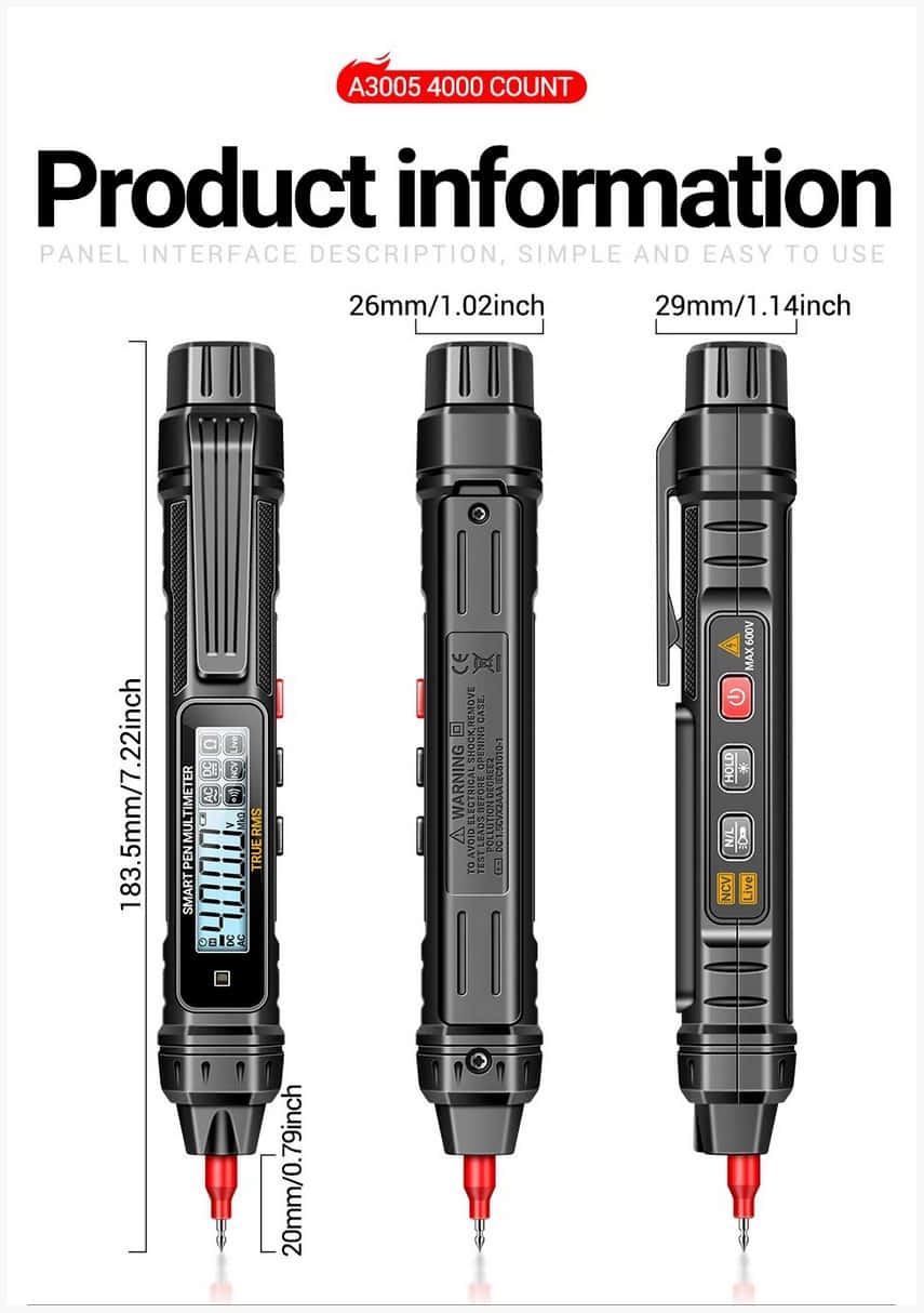 Карманный цифровой мультиметр ANENG A3005 True RMS 4000 отсчетов, NCV, определение фазы