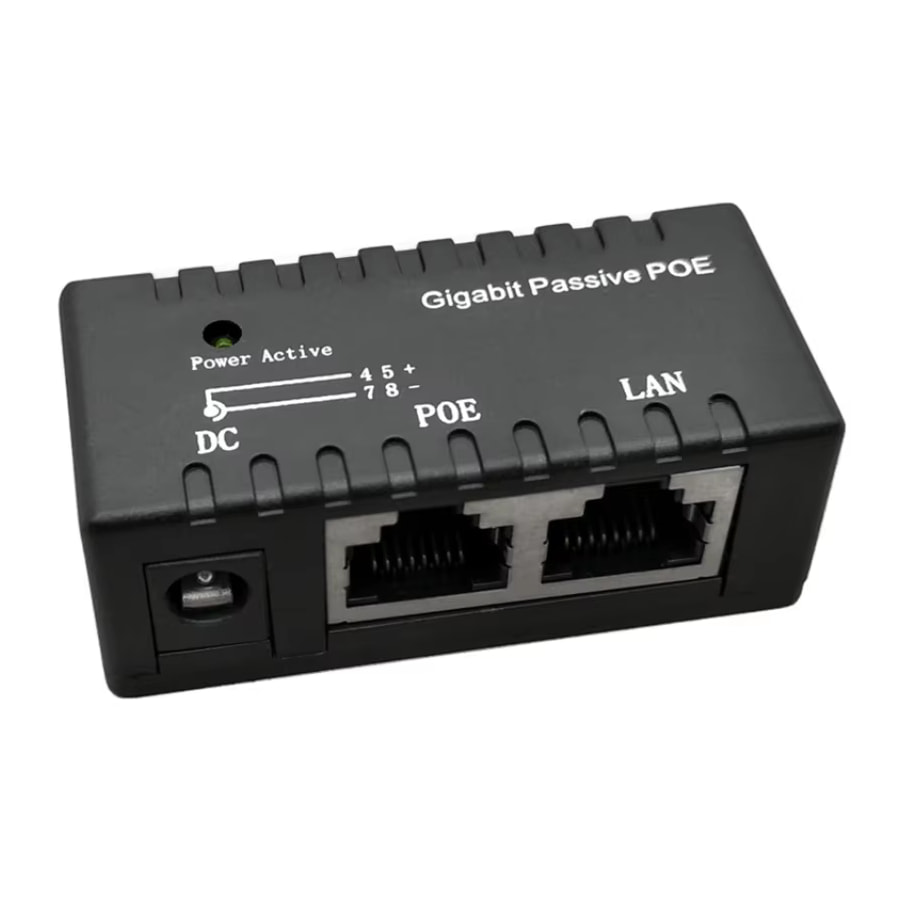 Гигабитный инжектор питания предназначен для запитывания устройств, поддерживающих питание Passive PoE, по 8-ми жильному кабелю витая пара от блока питания со стандартным выходным штекером типа Plug 2.1×5.5мм. Поддерживает скорости соединения до 1000BASE-TX (Gigabit Ethernet) и напряжение питания 12—48(56) Вольт.