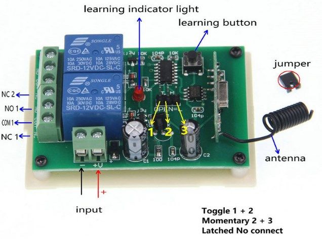 • «Коммутации» - Включение/Выключение используется в системах управления. При нажатии на кнопку портативного пульта происходит замыкание реле, при нажатии на эту же кнопку портативного пульта происходит размыкание реле. Этот режим позволяет управлять автоматическими шлагбаумами, электрическими воротами, осветительными приборами.