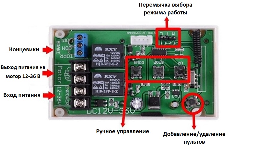 Набор уже настроен. Необходимо только подключить питание и мотор. Кнопки вверх, вниз и стоп.