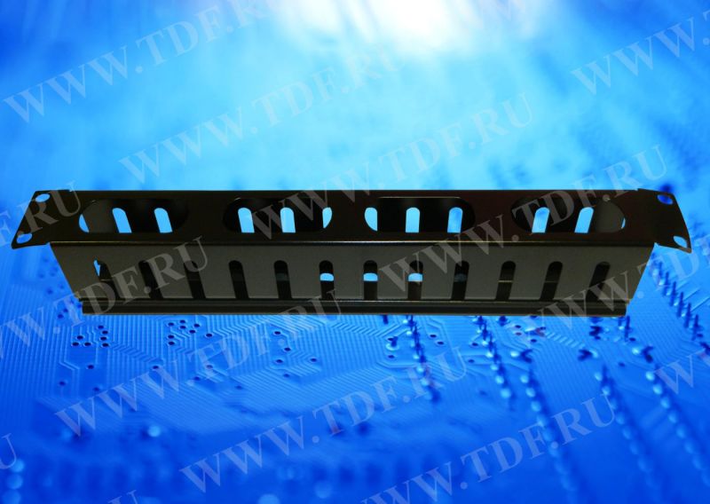 Кабельный органайзер 19", 1U, металлический, с металл. крышкой, металл. кольца, черный "S"
