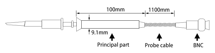 Щуп для осциллографа P4100 предназначенн для высоковольтных измерений осциллографами со стандартными разъемами BNC. Разъем щупа имеет пластиковый корпус для исключения опасности поражения оператора электрическим током.