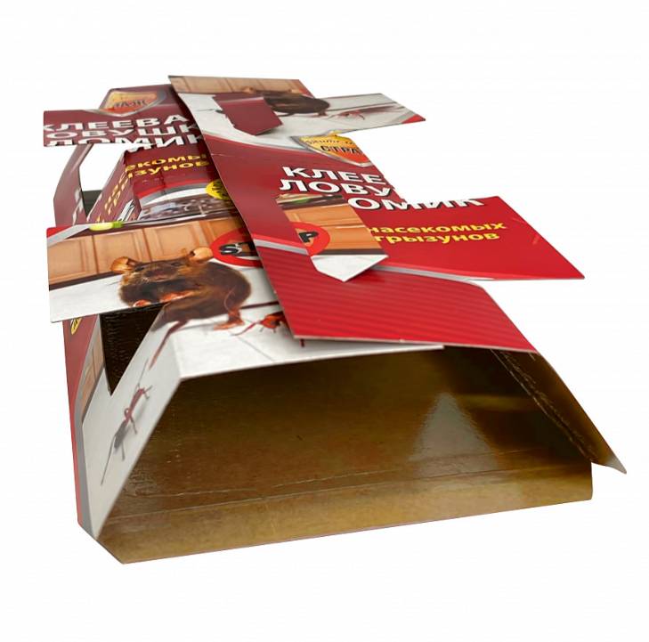 Аккуратно открыть ловушку и отделить бумагу, закрывающую клей.