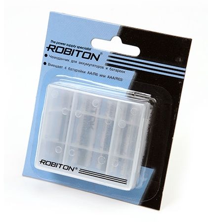 ROBITON Robibox - идеальное хранилище для ваших аккумуляторов и батареек. В этот вместительный футляр можно положить 4 батарейки или аккумулятора размера ААА/LR03 и АА/LR06.