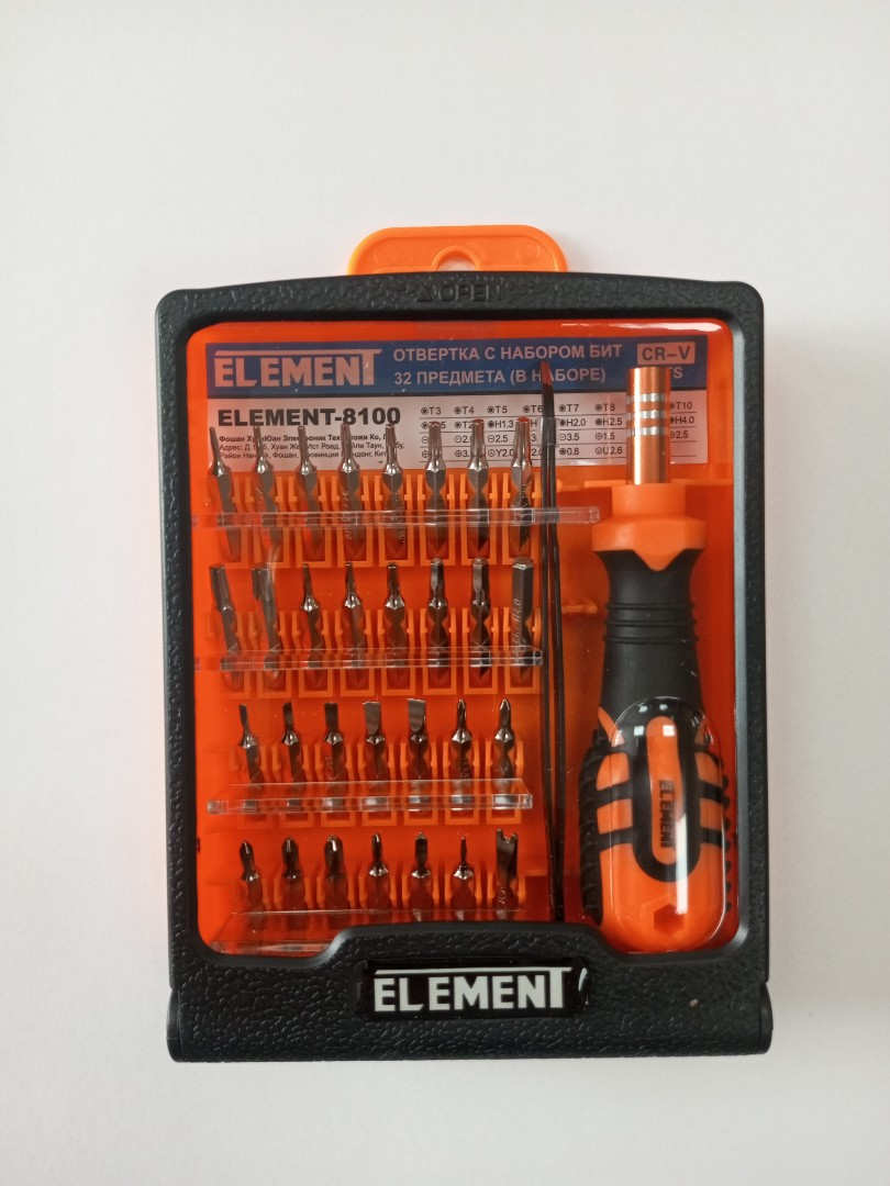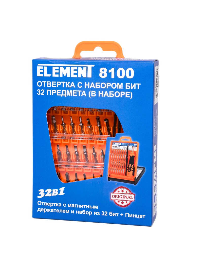 Отвертка с набором бит ELEMENT 8100 (32 предмета в наборе)