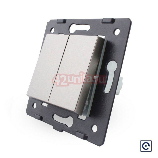 Двухклавишная механическая кнопка (звонок) Livolo, цвет серый (механизм) работает через реле. При нажатии на кнопку срабатывает реле.