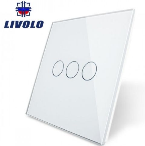 Панель для сенсорного выключателя Livolo UK стандарт, 3 клавиши, цвет белый, стекло