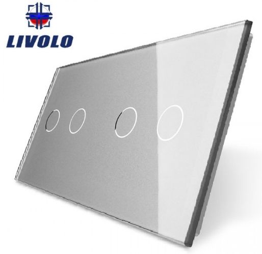 Панель двойная: 2 выключателя + 2 выключателя, серая