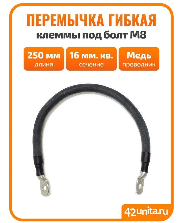 Перемычка гибкая S-10-8-400 изготовлены из изолированного медного кабеля сечением 16 мм.кв. Применяются для соединения нескольких аккумуляторных батарей и подключения их к инверторам и источникам бесперебойного питания.