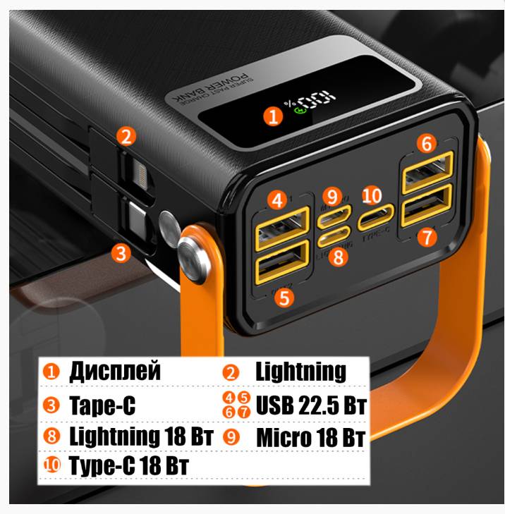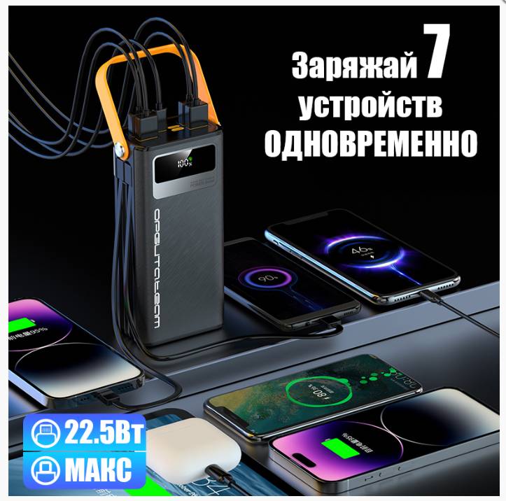 Повербанк внешний аккумулятор 30000 mAh Орбита OT-SMP01B - это мощное устройство, способное обеспечить надежное и быстрое зарядное решение для ваших устройств. С его мощностью 22.5 Вт и емкостью 30000 mAh, этот повербанк обеспечивает непрерывное питание даже для самых энергоемких гаджетов. Он оснащен 7 выходами, включая выход type-c и выход lightning, что позволяет заряжать различные устройства одновременно. Благодаря функции быстрой зарядки, вы сможете зарядить свои устройства в рекордно короткие сроки, экономя время и обеспечивая бесперебойную работу. Power bank также предлагает дополнительные функции, такие как встроенный фонарик, который может быть полезен в ситуациях, когда нужно освещение. Дисплей и индикация заряда позволяют легко отслеживать уровень заряда аккумулятора, чтобы вы всегда были в курсе его состояния. С Повербанком внешним аккумулятором 30000 mAh Орбита OT-SMP01B вы получите надежное и удобное решение для зарядки своих устройств в любое время и в любом месте.