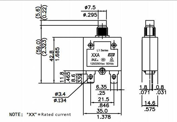 Автоматический предохранитель (брейкер) L1 30А, 125/250VAC, 50VDC
