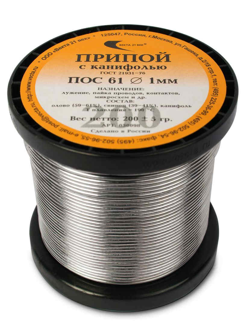 Припой-катушка оловянно-свинцовый ПОС 61 200гр 1,0мм с канифолью