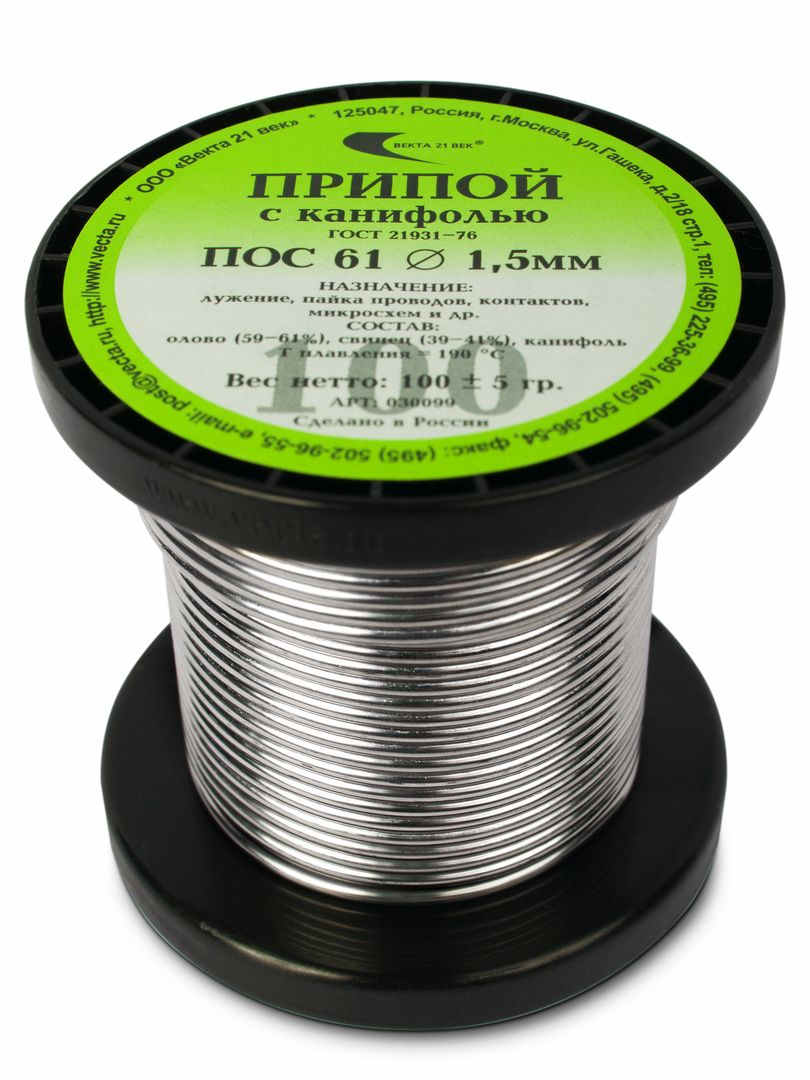 Припой-катушка оловянно-свинцовый ПОС 61 100гр 1,5мм с канифолью