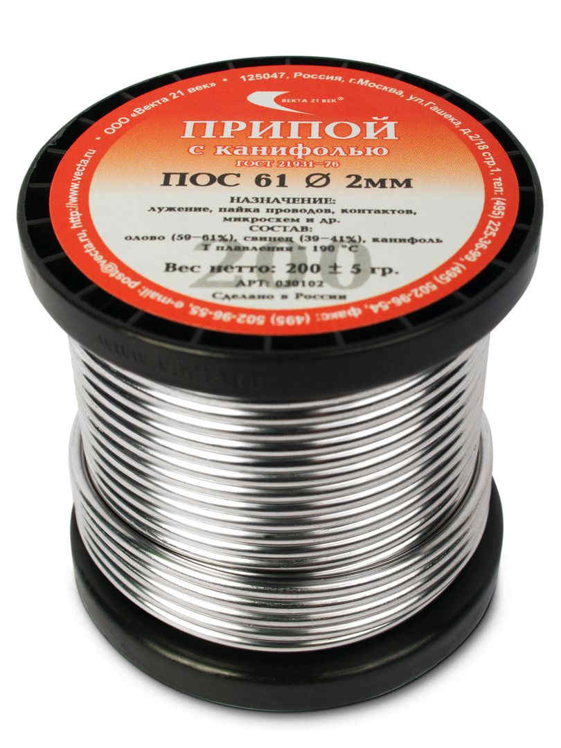 Припой-катушка оловянно-свинцовый ПОС 61 200гр 2,0мм с канифолью