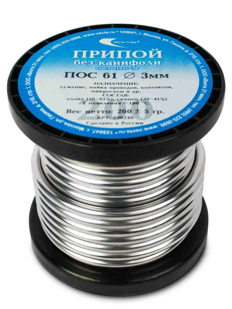 Припой-катушка оловянно-свинцовый ПОС 61 200гр 3,0мм без канифоли